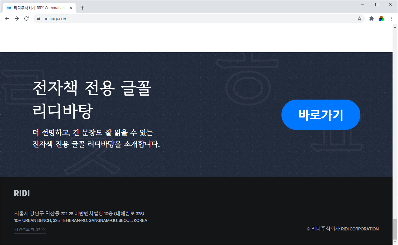 리디주식회사 홈페이지 www.ridicorp.com/에 들어가서