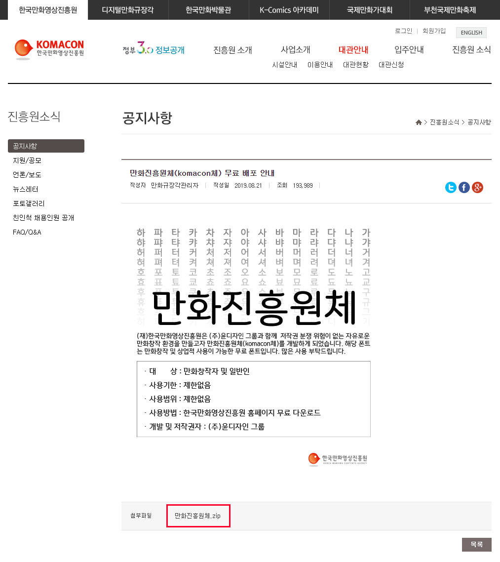 사용방법: 한국만화영상진흥원 홈페이지 무료 다운로드