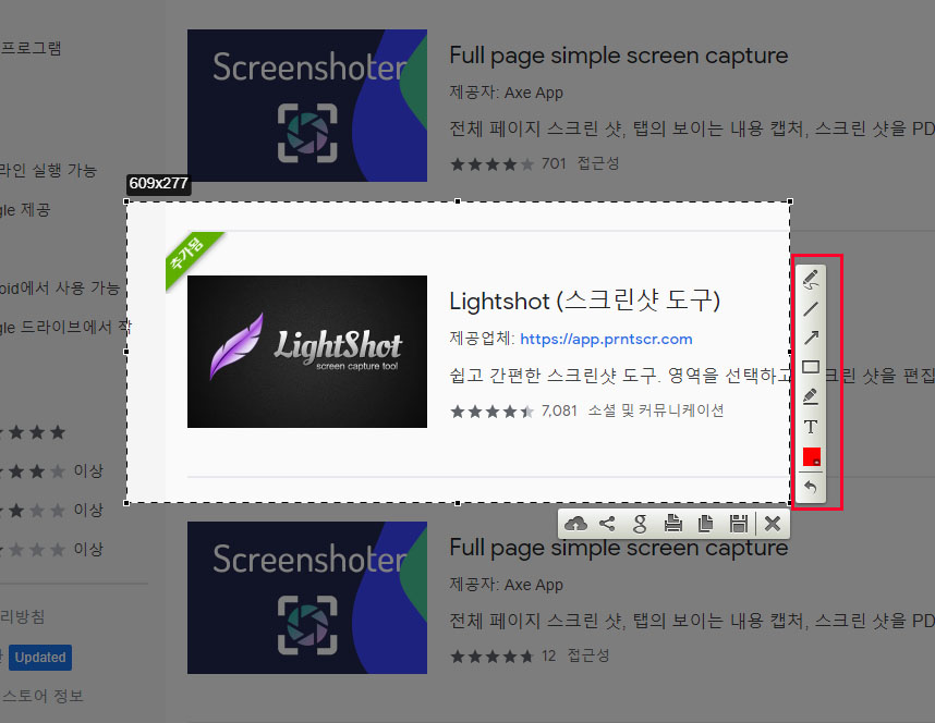 아래의 크롬 브라우저 확장 프로그램에서 'Lightshot'을 검색한다.