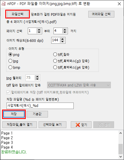 - PDF 파일을 이미지(png,jpg,bmp,tiff) 로 변환