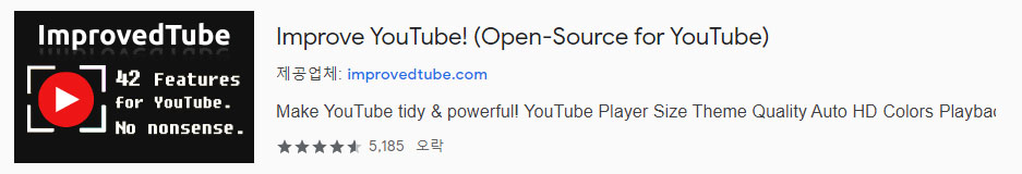 크롬 웹스토어에 들어가서 'improve youtube'로 검색을 해서 찾아도 되고