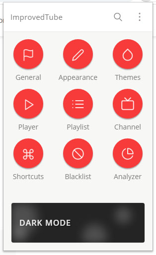확장프로그램 아이콘을 눌러 추가된 improve youtube를 누르면 다음과 같은 메뉴창이 뜬다.