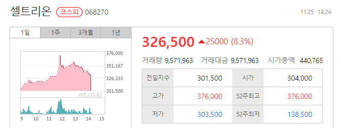임상을 진행 중인 코로나19(COVID-19) 치료제를 환자 327명에 투약하고, 향후 조건부 허가를 신청할 예정이라는 소식 등에 영향으로 25일 증시에서 셀트리온 (330,500원 상승29000 9.6%)은 오전 9시22분 현재 전일 대비 1만3000원(4.31%) 오른 31만4500원에 거래 중이다.