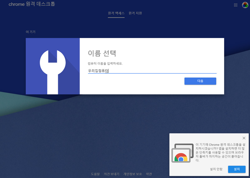 내 PC에 있는 작업 문서를 전송하거나, 켜 놓고 나온 컴퓨터를 끄고 싶을 때, 컴퓨터 상태를 점검하고 싶을 때, 원격으로 제어하고 조작하는 크롬 브라우저의 확장 프로그램이다.