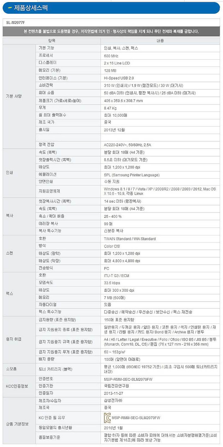 - 모델명 : SL-M2077F