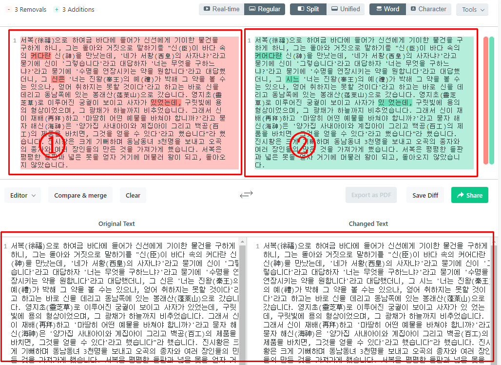 - Changed Text에 변경된 또는 비교할 텍스트를 넣는다.