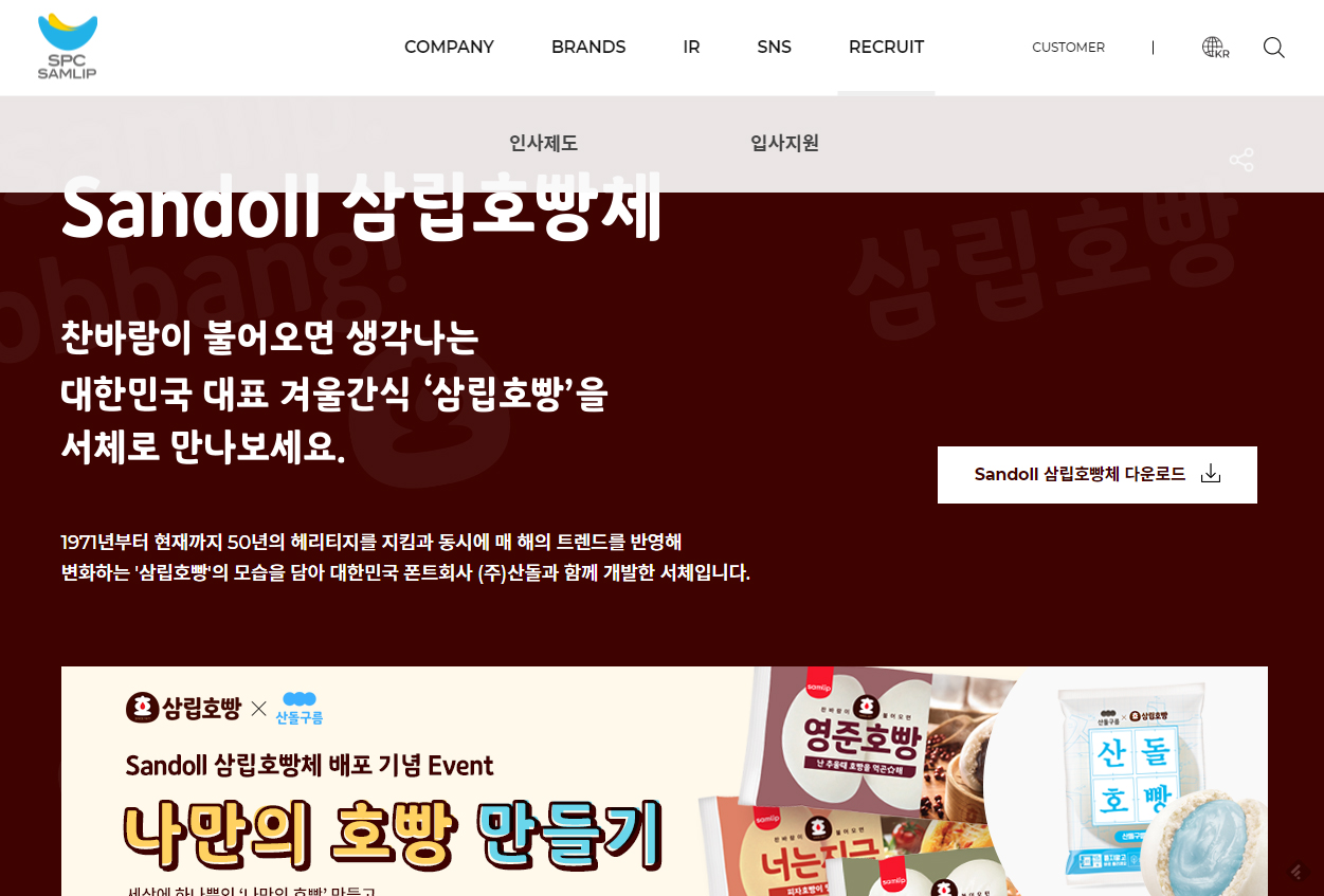 Sandoll 삼립호빵체의 저작권은 (주)SPC삼립과 (주)산돌이 공동 소유하고 있습니다.