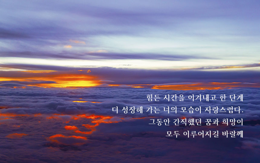 더 성장해 가는 너의 모습이 자랑스럽다.