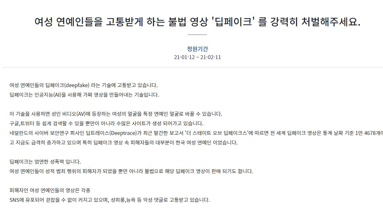 여성 연예인들의 얼굴과 음성을 합성해 음란물을 배포하는 사건들도 종종 있었다.
