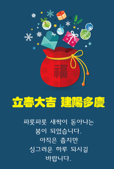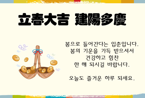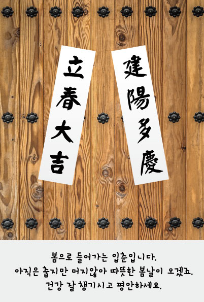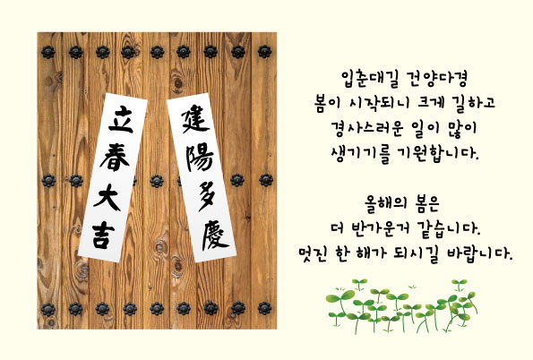 뜻 : 봄이 시작되니 크게 길하고 경사스러운 일이 많이 생기기를 기원합니다.