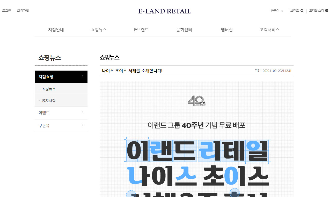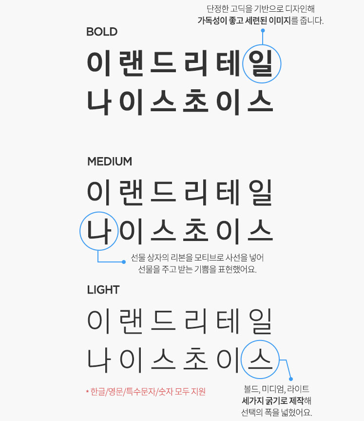 본문 서체가 지녀야 할 가독성과 이랜드 리테일만의 개성을 표현했다고 합니다.