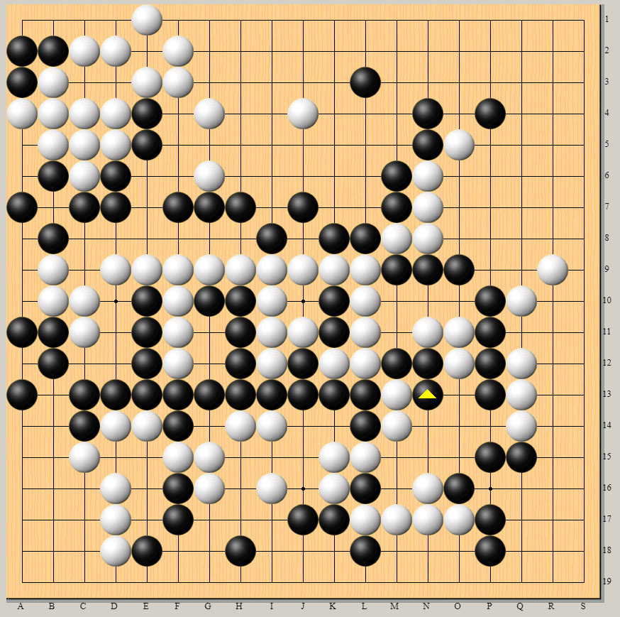흑 이창호 9단 : 백 조훈현 9단 --> 흑 불계승(157수)