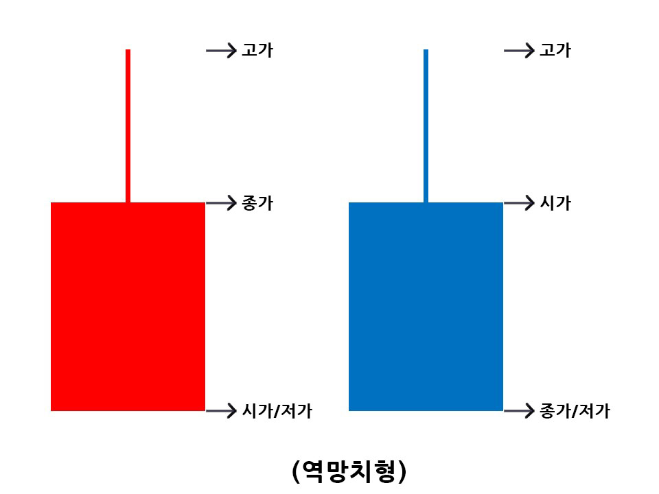 역망치형 양봉에서는 장 시작과 함께 쭉 올랐다가 최고가를 찍고 다시 조금 떨어져 장을 마감했다고 할 수 있겠네요.
