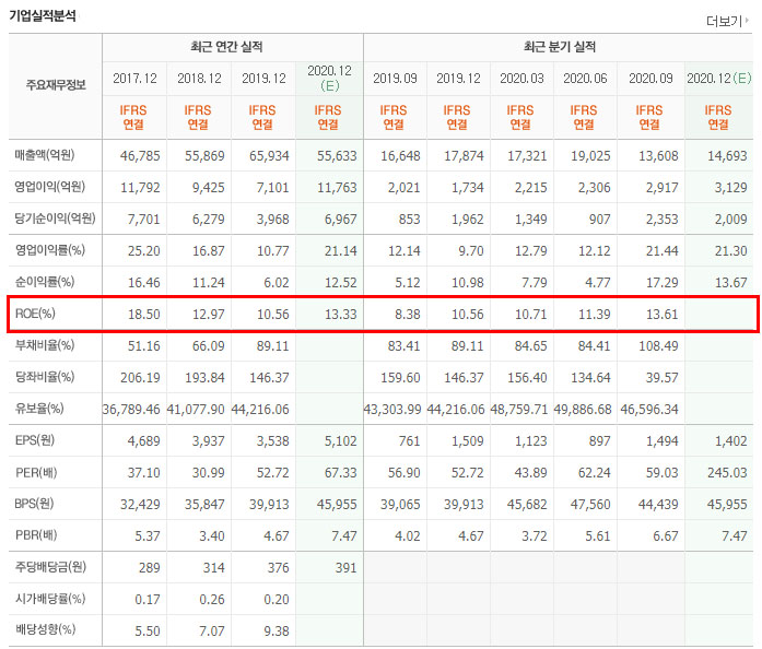 ROE = EPS(주당순이익) / BPS(주당순수익)