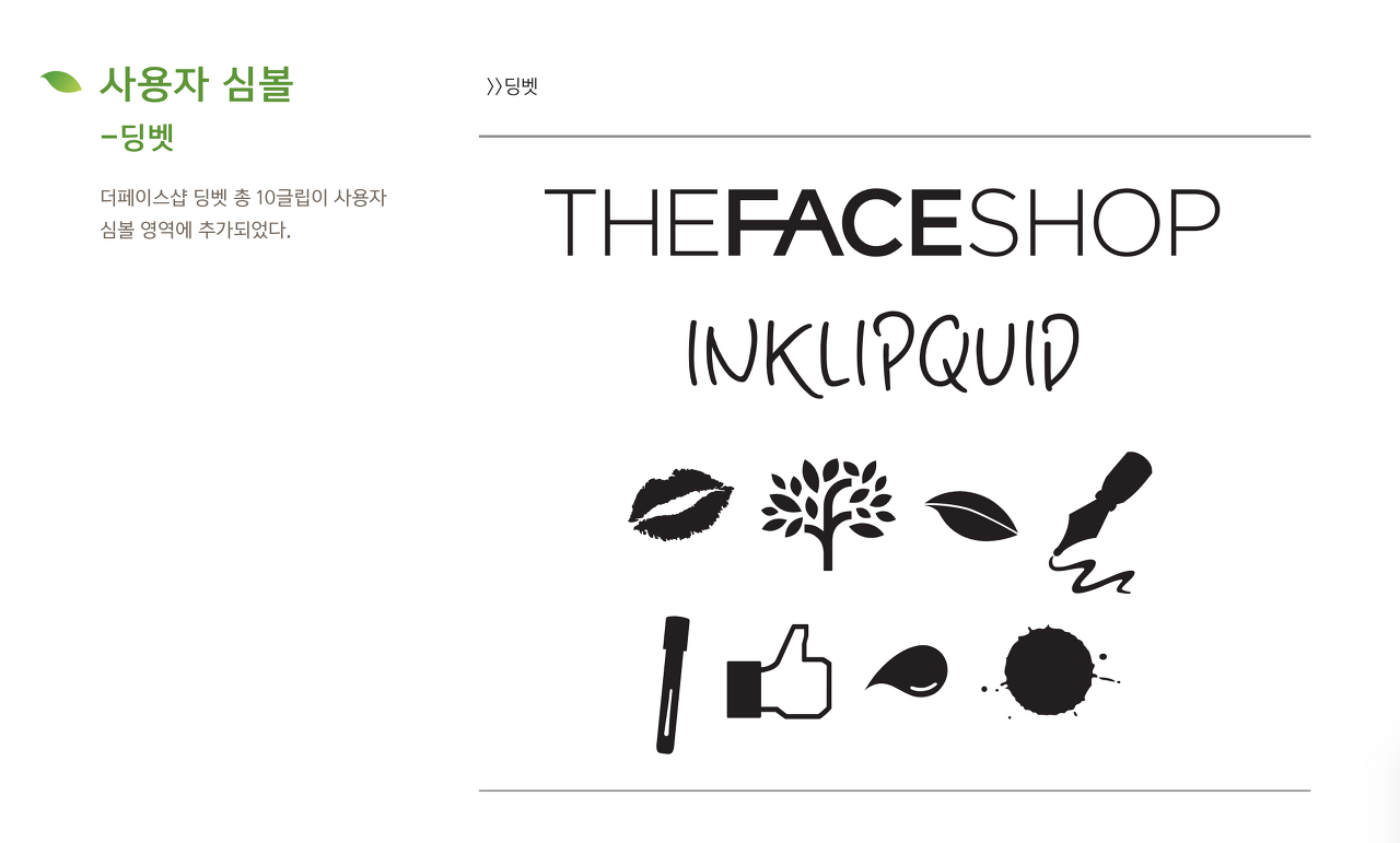 더페이스샵 잉크립퀴드 서체 디자인 컨셉