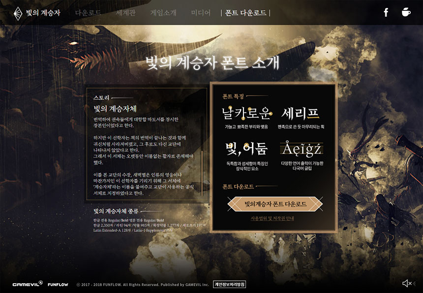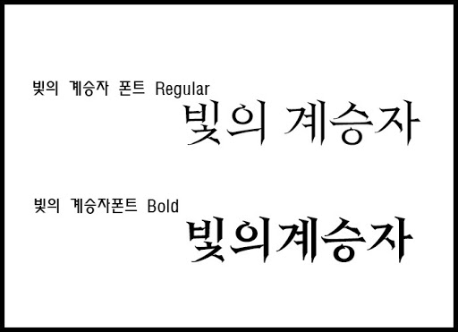 ‘빛의계승자체’를 사용한 모든 결과물은 당사의 빛의계승자 서체 및 게임의 프로모션을 위해 무상으로 활용될 수 있으므로, 빛의계승자체의 사용시 이러한 활용에 동의하는 것으로 간주됩니다. 이를 원치 않는 사용자는 언제든지 당사에 협의를 요청하실 수 있습니다. 문의: 펀플로(www.funflow.co.kr)