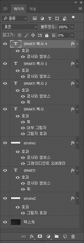 다시 smarti 텍스트 레이어를 네개 더 복사한다. 레이어 이름 'smarti 복사 2, 3, 4'는 칠을 0%로 한다.