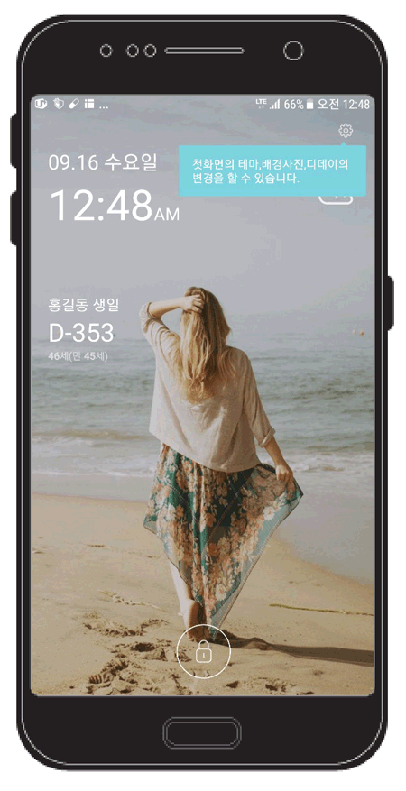 앱을 설치하면, 휴대폰 첫화면이 TheDayBefore 화면으로 나온는데 해제하고 싶다면, 휴대폰 메인으로 들어가 TheDayBefore 앱을 실행시켜 앱화면에서 '더보기'를 클릭한다. 다음 아래우측 이미지 화면이 나오면 우측상단에 톱니바퀴 아이콘을 클릭하여 '첫화면 사용'에 체크를 풀면 된다.