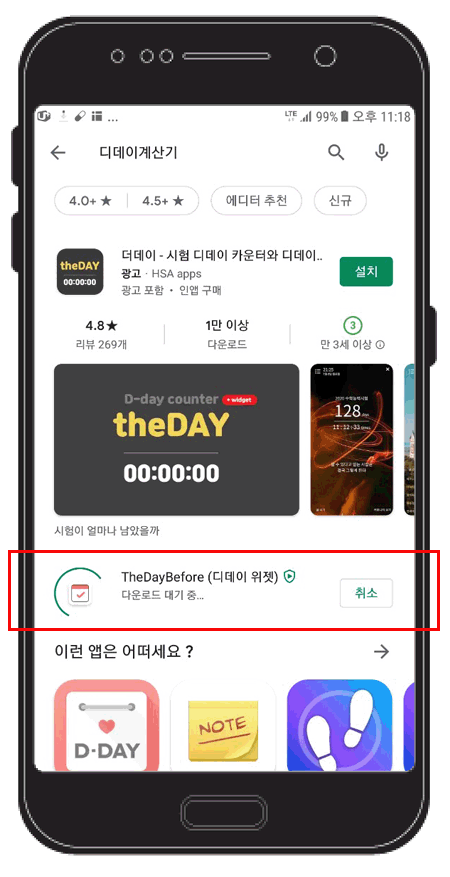 플레이스토어나 앱스토어에서 디데이라고만 입력해도 바로 보인다. 플레이스토어에서 다운로드 받았다.
