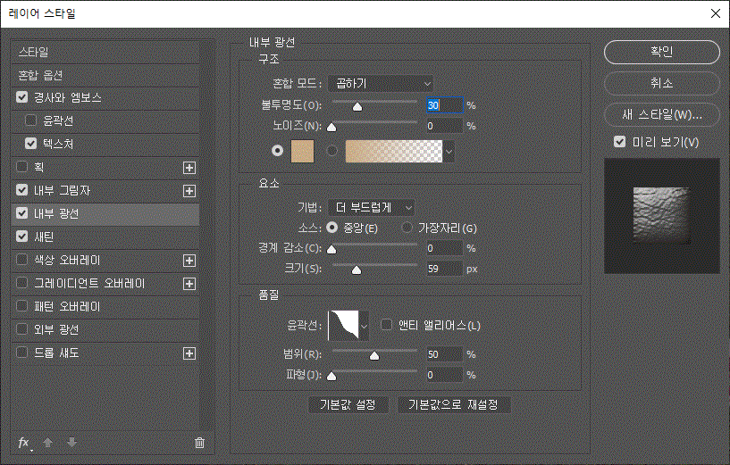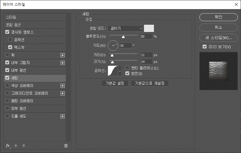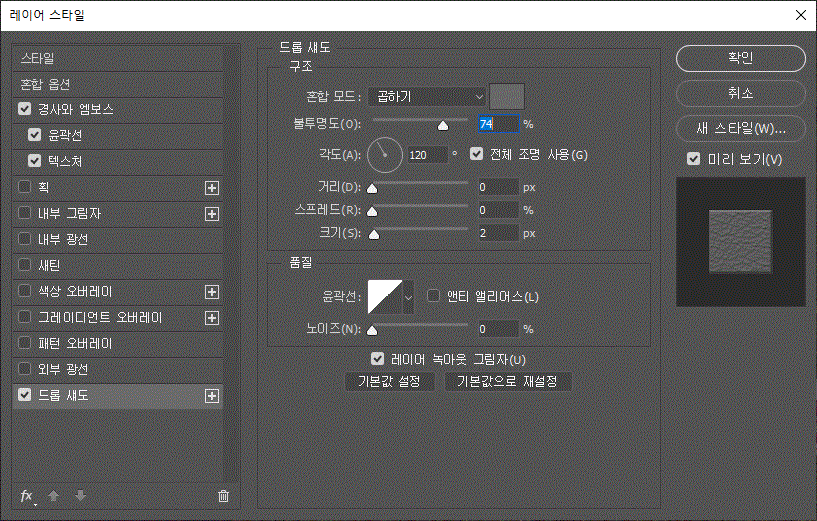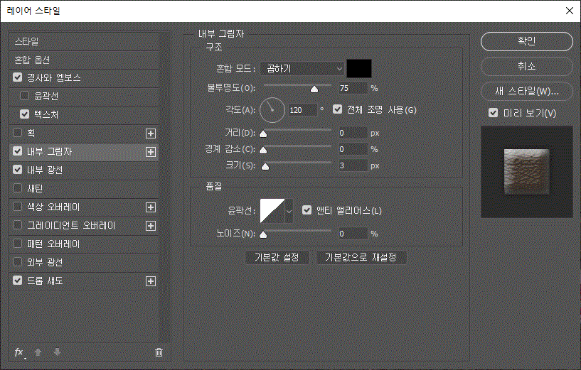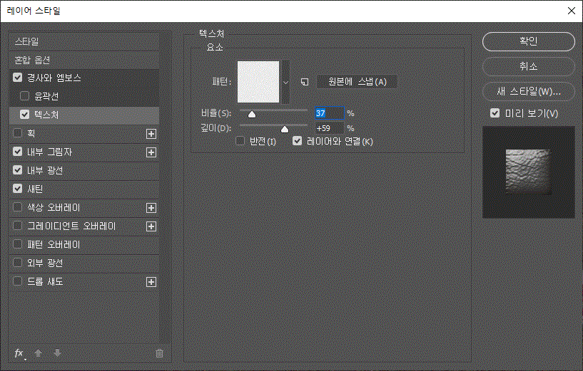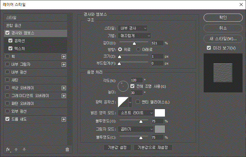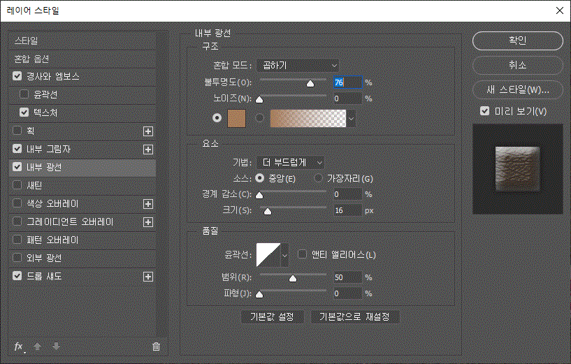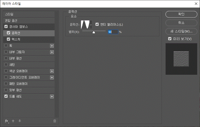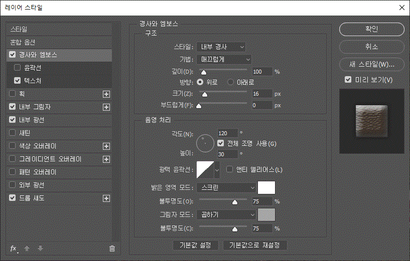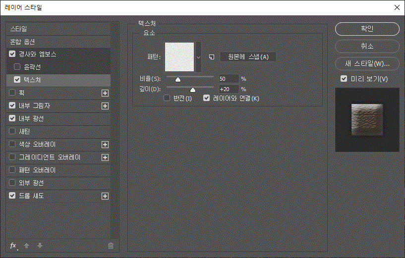 텍스쳐의 패턴을 가죽 질감의 패턴으로 선택한다.