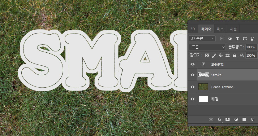 stroke 레이어를 활성화 하고, 'Ctrl+Alt+smarti 텍스트 레이어 아이콘'을 클릭하여