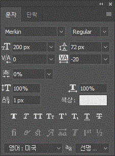 Merkin 서체를 사용하여 텍스트 smarti를 입력하여 텍스트 레이어를 만들었다. 글꼴 설정은 다음과 같다.