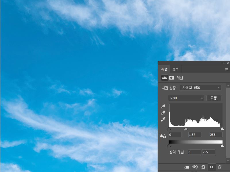 구름배경 이미지를 레벨 조정을 하여 더 밝게 만든다.
