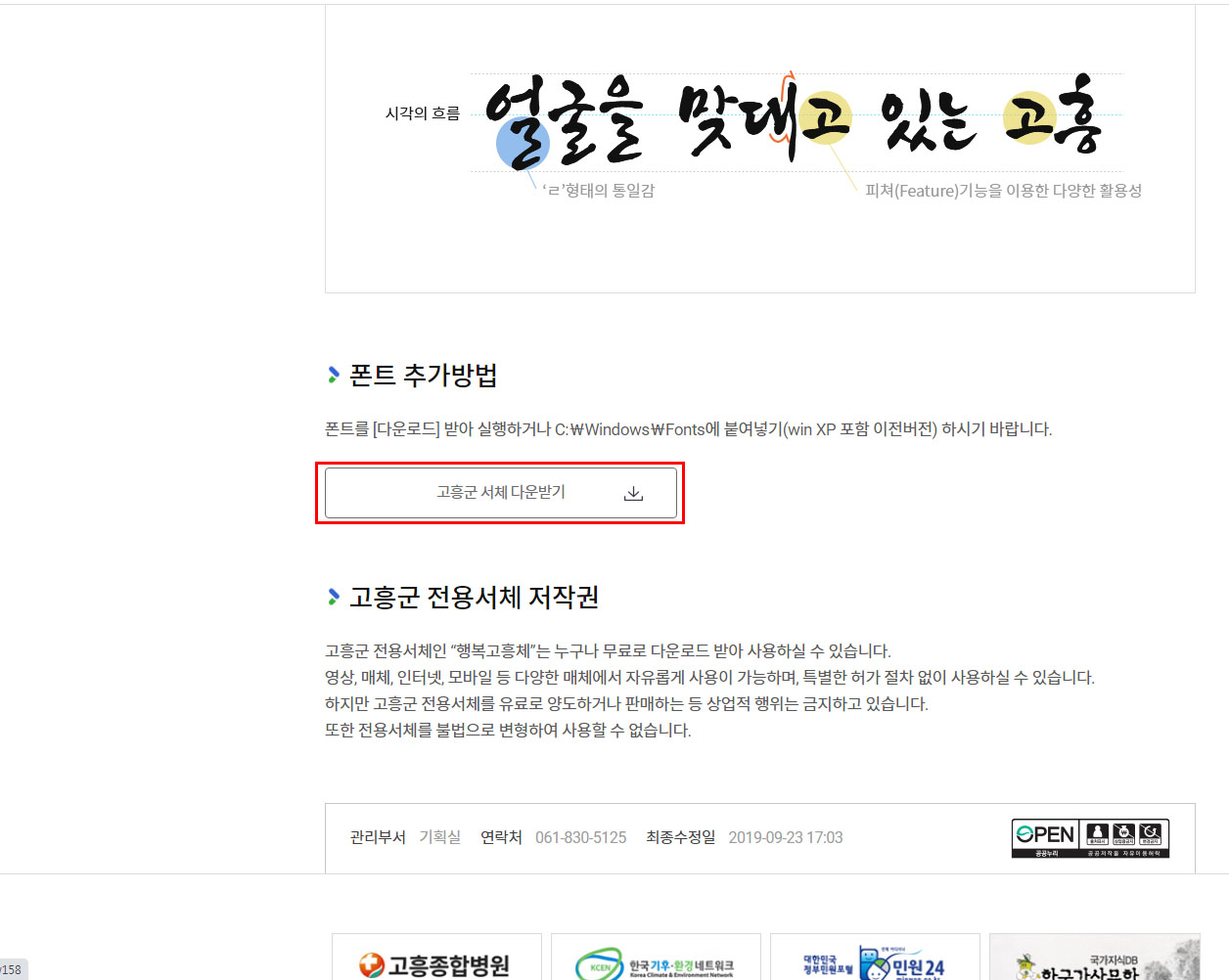행복고흥 서체 다운로드 받기