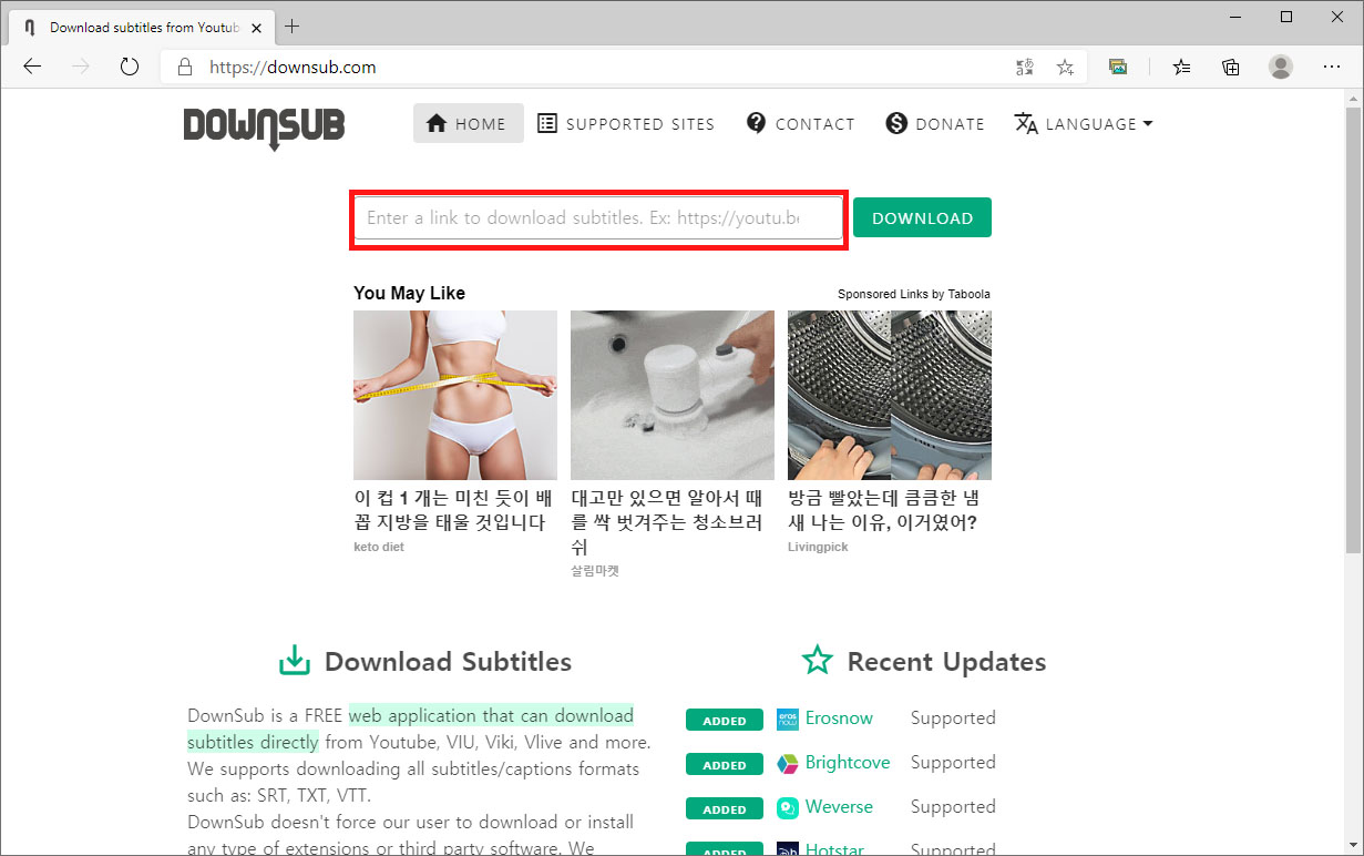유튜브 동영상의 한글자막이 있는 영상의 자막을 다운로드 할 수 있도록 도와주는 사이트