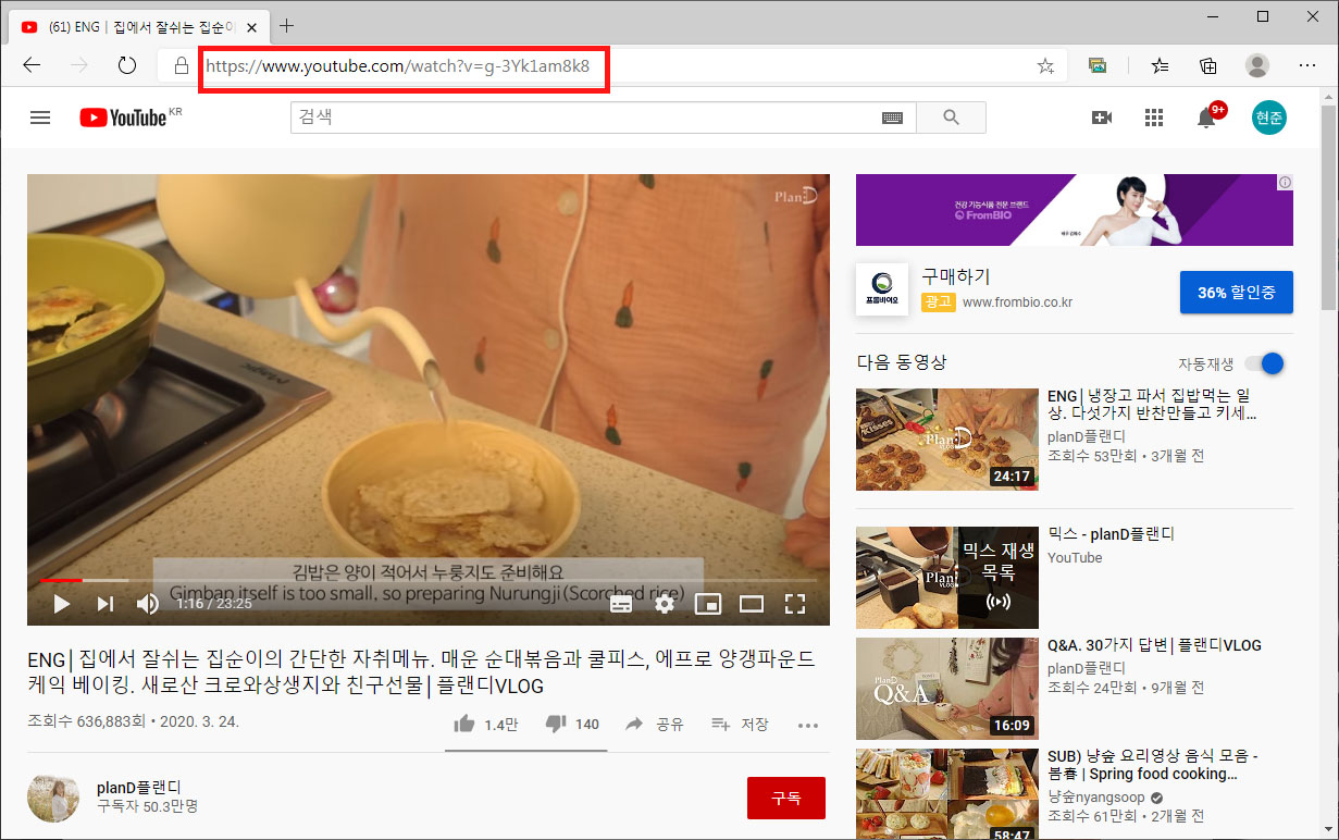 첫번째 : 자막을 받고 싶은 유튜브 영상 주소를 복사한다.