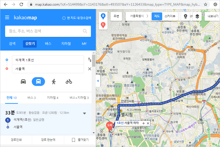 네이버 지도, 카카오 맵이 사용할때 순서나 용어가 다를 수 있으나 기본 방식은 거의 동일하다.